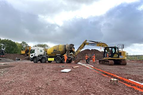 The project is being undertaken by AKN Build, whose commercial director, Richard Quarmby, says the Chepstow site is notable for relatively challenging soil conditions, something we encounter as soon as we step onto the red, clay-like soil, which seems to stick to everything it touches.